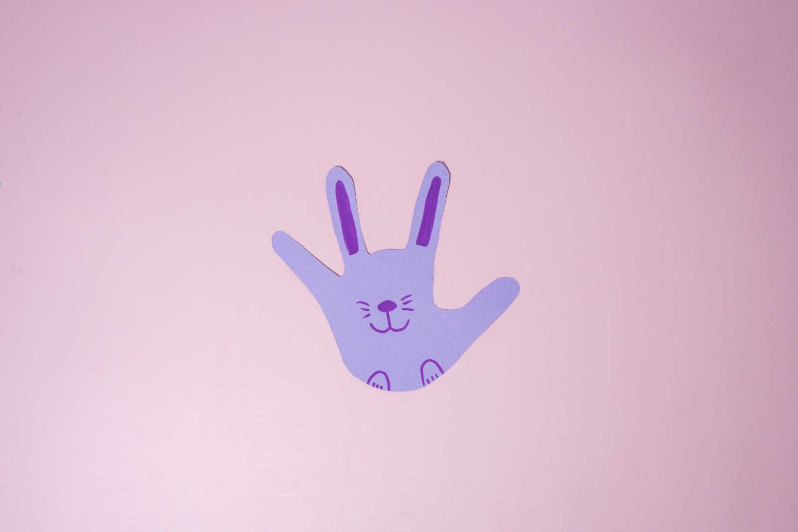 Rotate the handprint so the fingers are pointing upward. These will become the bunny’s long ears. The palm becomes the bunny’s face, and the thumb can act as a cheek or side of the head.